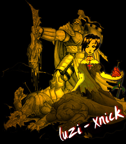 Bevor ich nun beginne, möchte ich euch bitten, mit den Geschenken und den Glückwünschen zu warten, bis die Trauung vorbei ist und diese ist erst beendet, wenn ein Kuss den Bund besiegelt hat, danke :) Liebe Freunde, Luzifer und Xnick, eine dunkle Magierin und ein menschlicher Kämpfer, unterschiedlicher kann man nicht sein. Doch beide haben noch nie die einfachsten Wege gewählt. Luzifer, eine Magierin die von sich selbst sagt: "Ich wollte in meinem Leben immer der Stein im Flussbett sein, an dem sich das Wasser zur Welle bricht". Dieser Satz zeigt uns das sie gerne etwas bewegen möchte, sie möchte Dinge verändern, sie will niemals sein wie alle. Mit dem Strom schwimmen passt nicht zu ihr, sie bricht den Strom. Xnick, der Kämpfer, wird seine Kämpfernatur brauchen um die Frau an seiner Seite wenigstens Streckenweise ein bisschen im Zaum halten zu können. Er sagt von sich selbst das er Menschen mag die das machen was sie wollen, egal was andere darüber denken. Da kann man nur sagen da hat er in Luzifer die Frau seiner Träume gefunden. Die beiden lernten sich richtig kennen, als Luzifer eine traurige Phase zu überstehen hatte. Xnick half ihr in dieser Phase durch blosse Anwesenheit und dadurch das er ihr zuhörte. Luzifer bekam wieder Lust weiterzukämpfen, sich nicht gehen zu lassen und als die alles entscheidende Frage kam war es für Luzifer nicht wirklich schwer die wahre Antworte zu finden. So wollen wir sie begleiten auf ihrem Weg in die Freewar-Ehe. Ist irgendjemand anwesend, der Einwände dagegen hat? So möge er jetzt sprechen oder für immer schweigen. /me blickt fragend in die Runde. Niemand? Gut, dann bitte ich das Brautpaar und die Trauzeugen zu mir. Luzifer, so frag ich dich: willst du den hier anwesenden Xnick zu deinem FW-Ehepartner nehmen? Ihn mit deinen Schwingen beschützen, egal was kommen mag, bis dass der FW-Server euch scheidet, so antworte mit "Ja". Und ich frage dich, Xnick: willst du die hier anwesende Luzifer zu deiner FW-Ehepartnerin nehmen? Zu ihr stehen, Sie davor beschützen jemals so zu sein wie sie nie sein will , bis dass der FW-Server euch scheidet, so antworte mit "Ja". ![]() Ein geheimnissvolles Wesen erscheint murmelt ein paar Worte und verschwindet so schnell wieder wie es kam. So wie ein Ring keinen Anfang und kein Ende hat, so soll auch eure Liebe kein Ende haben. Nun steckt euch als sichtbares Zeichen eures Eheversprechens gegenseitig die Ringe an und sprecht mir bitte nach: Nimm diesen Ring als Zeichen meiner Achtung und meiner Treue. Die Ringe sollen uns verbinden bis in alle Ewigkeit. ![]() ![]()